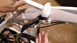 Revelo LIFT folding bike with shoulder carrying strap.   Ease of folding, rolls when folded, anti-lock braking and rotating handlebars with THINstem for ease of bike storage and theft prevention.